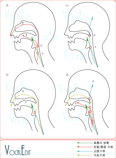 가)의 2번 그림의 경우 특히 여러분들이 노래연습을 할경우 좋은 고음의 소리를 내기 위해