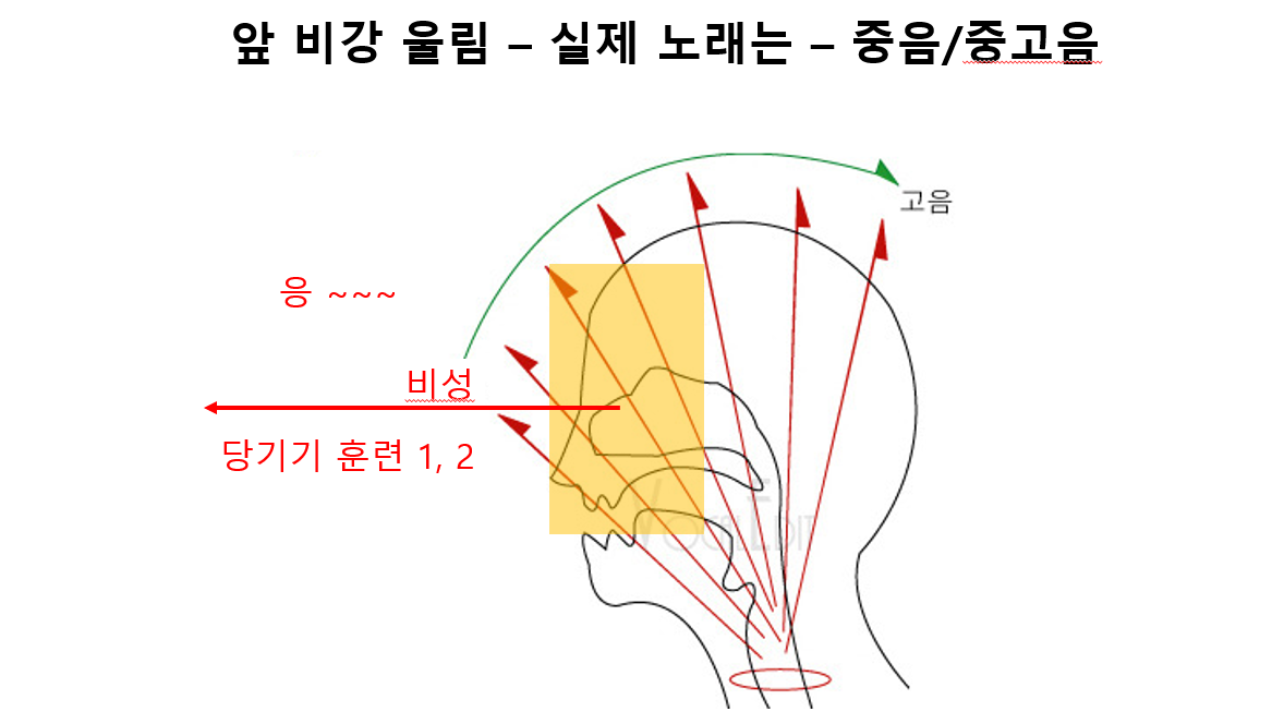 앞 비강 울림 - 실제 노래는 (저음 : 흉성부 + 비성부)
