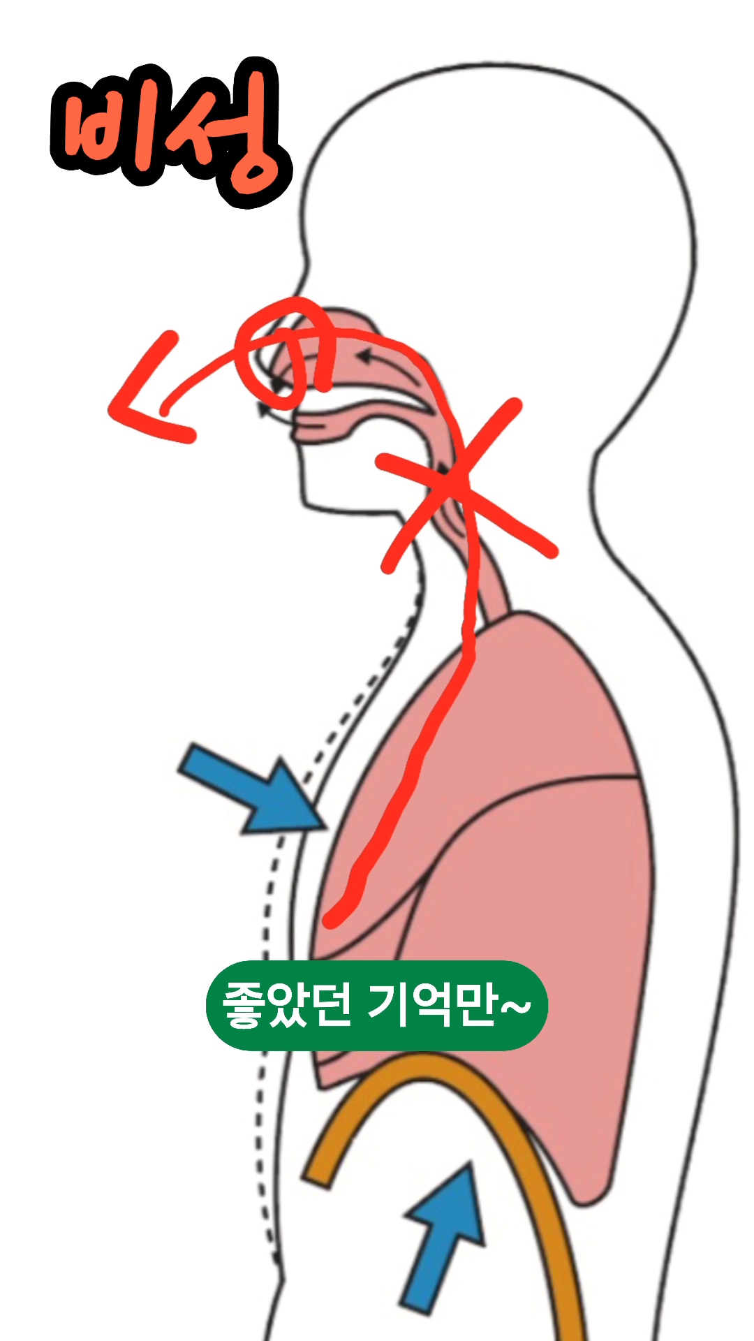 - 호흡을 입으로도 코로도 흐르게 할수있는데(기류) 코의 울림을 호흡이 함께 사용하는것으로