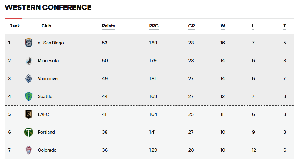 LAFC 순위 확인 링크 : https://www.mlssoccer.com/standings/#season=MLS-SEA-0001K9&live=true